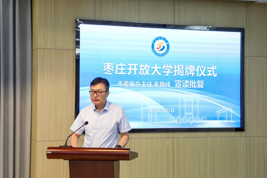 市委组织部副部长,编办主任、市公务员局局长朱艳峰宣读了枣庄开放大学成立批复文件。