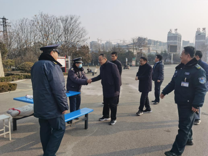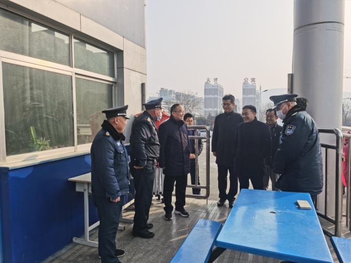 2月9日,除夕佳节,学院党委书记郝荣平、院长梁家和到校看望校园值守人员,并带队检查校园安全工作,安保处、后勤处、质管办相关人员陪同检查。