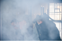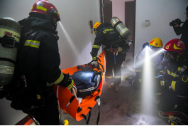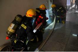 下午3点40,梁家和发布模拟高层火灾应急逃生疏散以及被困人员救援演练开始命令。警报骤响,参演师生迅速集结疏散;紧捂口鼻、躬身前行模拟火场逃生;演练初期火情扑救、解救被困人员。全体师生按照预先设定的演练方案和逃生路线有序撤离至安全地带。演练过程中学院微型消防站队员与专业消防救援人员密切配合,展示了专业高效的救援与扑救火灾能力。