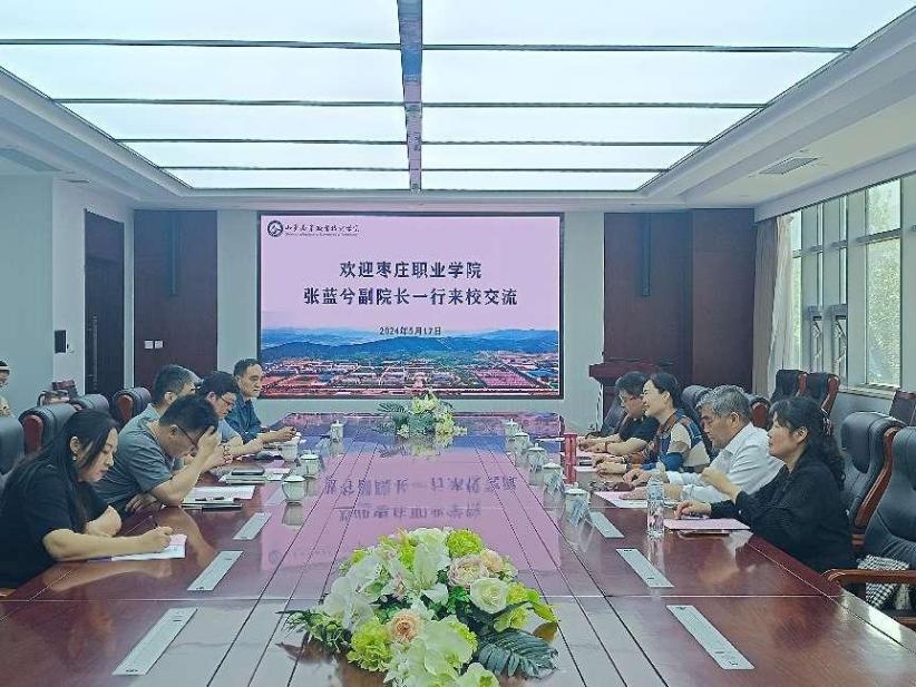 张蓝兮一行随后到达了山东商业职业技术学院,受到了山东商业职业技术学院副院长方玉鹏的热烈欢迎,双方就“双高”校建设、社会服务能力建设、科研成果转化等议题进行了深入探讨。商职院作为国家示范性高等职业院校,在产教融合和技术服务方面有着显著成就,交流中分享了从 2021 年开始实行有组织的科研管理,包括专业群建设、双高建设等方面,为我院提供了宝贵的经验。