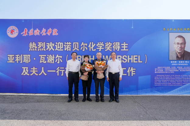 9月25日,枣庄职业学院迎来了一批特殊的客人——美国国家科学院院士、2013年诺贝尔化学奖获得者亚利耶·瓦谢尔教授及其夫人一行,俄罗斯工程院院士、著名分子细胞生物学家吴炯教授受邀出席此次活动。