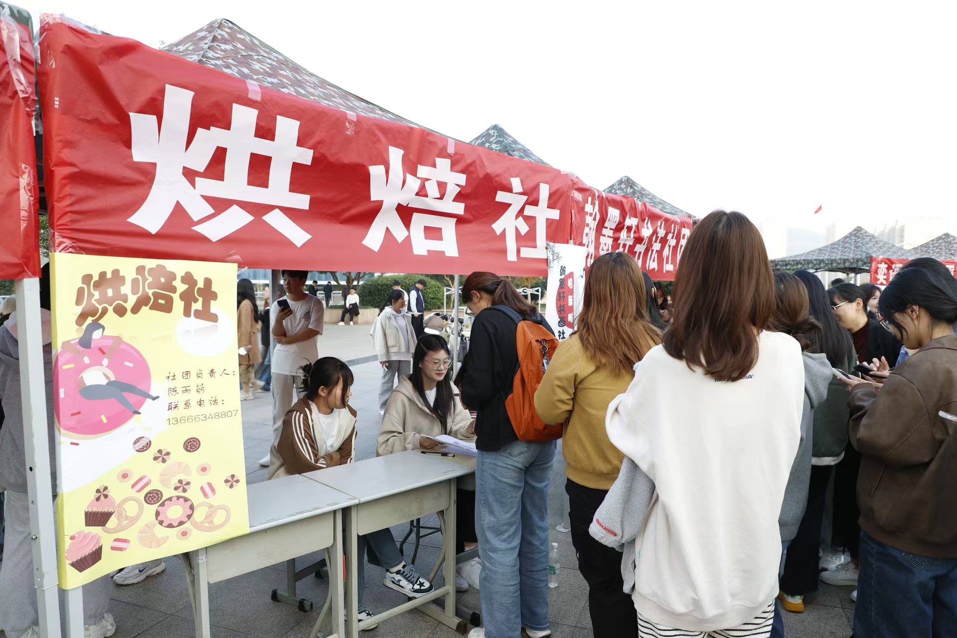 橙黄橘绿染秋色,天高云阔迎君来。为进一步拓宽大学生兴趣爱好的广阔平台,充分发挥学生社团育人功能,推动学生社团健康有序发展,10月29日,我院2024—2025学年社团文化活动月启动仪式暨社团纳新活动在学院工匠文化广场火热开展。学院55个学生社团竞相“招贤纳士”,热闹非凡的纳新现场让深秋的校园熠熠生辉。学院领导郝荣平、王念,办公室、学生工作处(团委)相关同志深入社团纳新现场,并与师生亲切交谈。