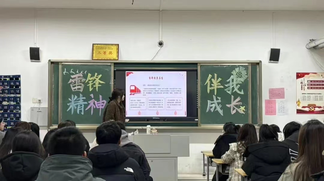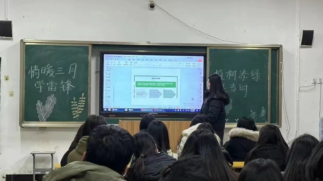 各班团支书以ppt的方式向同学们介绍了雷锋精神的时代内涵和故事名言,带领同学们感受雷锋的精神力量,并结合实际,讨论如何将雷锋精神落实到具体行动中,将其内化于心,外化于行。团支书们讲述了植树节的由来和成效,使同学们了解到植树节的意义,从植树节出发引出了我们也要保护环境,爱护资源,课上同学们都积极回应。