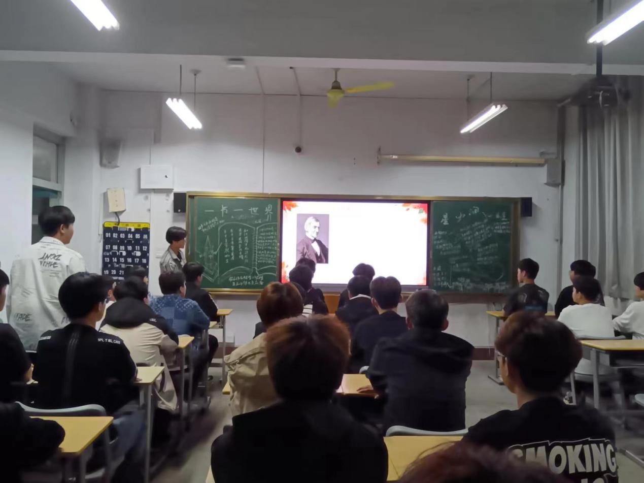 各班团支书以丰富多彩的画面和生动翔实的内容,淋漓尽致地向同学们阐述了读书对于个人成长与提升的重要价值。团支书精选了一系列富有哲理的读书名言,成功吸引了同学们的关注。团课精心挑选并深入解读了《平凡的世界》《人性的弱点》《瓦尔登湖》《梦的解析》《时间简史》五本极具影响力的经典著作,通过对每本书籍作者背景、主要内容、写作风格及其深远影响的详细介绍,使同学们对这些世界名著有了更为全面且深入的理解。团课氛围活跃,同学们积极参与互动,纷纷畅谈自己阅读上述作品后的所感所悟,展现出他们对文学与知识的热切追求。同学们纷纷表示,将在今后的学习生活中,充分利用课余时间多读书、读好书,不断丰富自己的知识储备、提升自己的语言能力、培养思维能力。